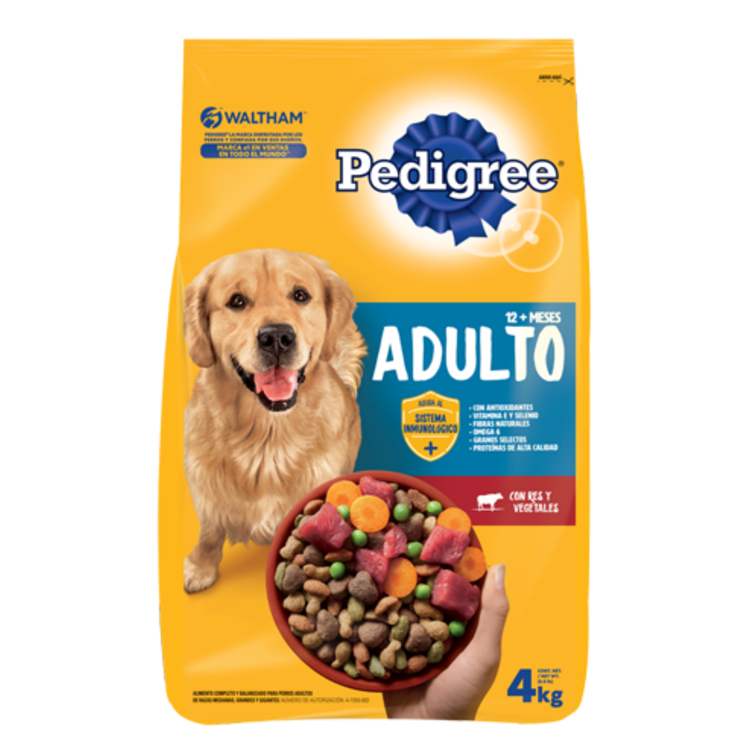 Es una comida para perros cuyo alto contenido de proteínas ayudan a que tu peludo tenga unos huesos y músculos más fuertes. Con Pedigree Adulto Nutrición completa tu perrito tendrá mayor vitalidad, un pelo brillante y más salud.