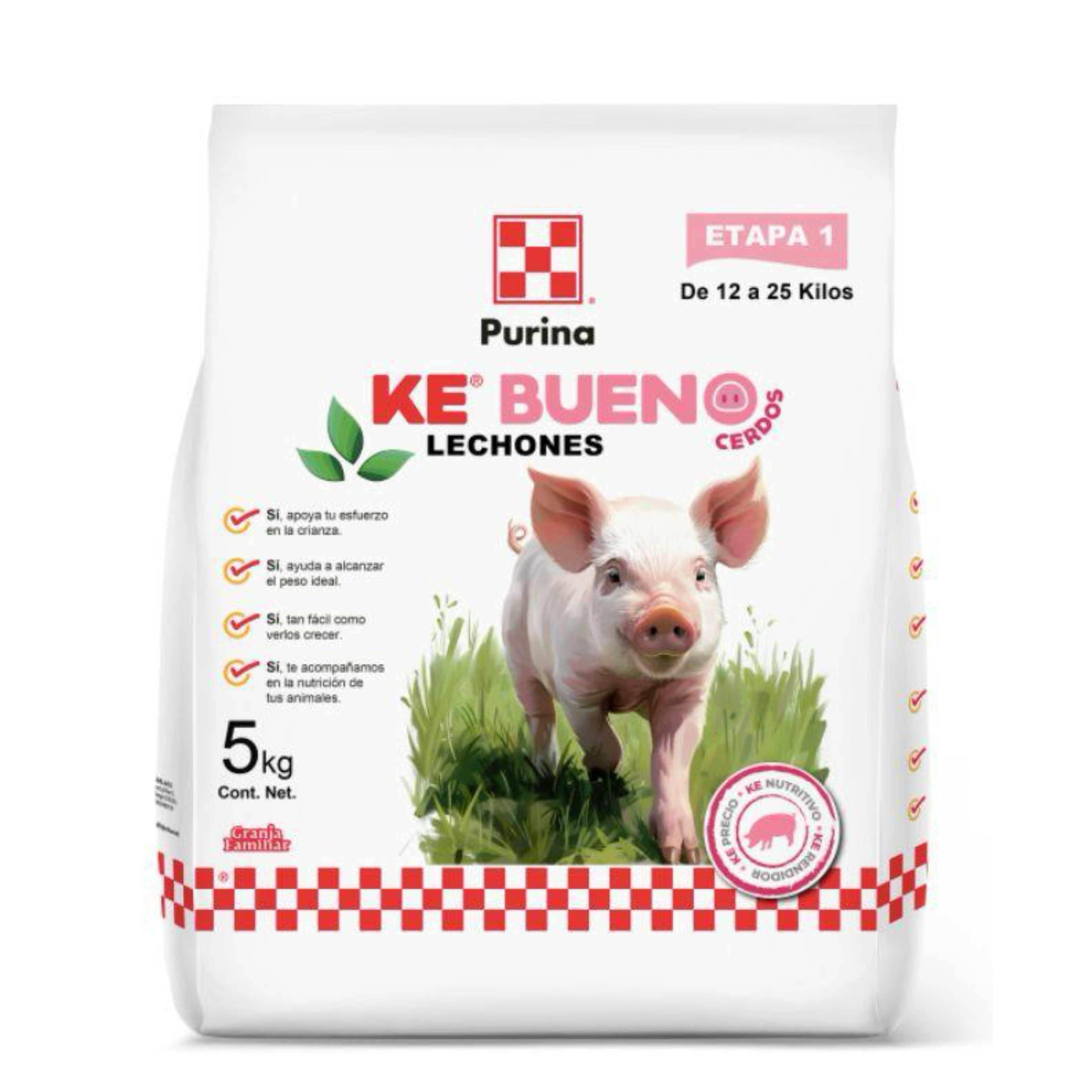 - Ofrézcase como única fuente de alimentación a lechones desde los 12kg hasta los 25kg de peso, dependiendo del sistema de pre inicio a razón de .75 a 1 kg/dia y antes de usar Desarrollo Ke Bueno