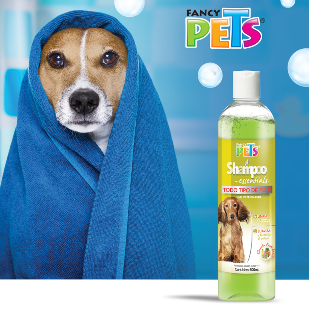 El Shampoo Essentials para Todo Tipo de Pelo de Fancy Pets está formulado para remover la suciedad hasta del pelaje más complejo, dejándolo suave para un fácil cepillado.
