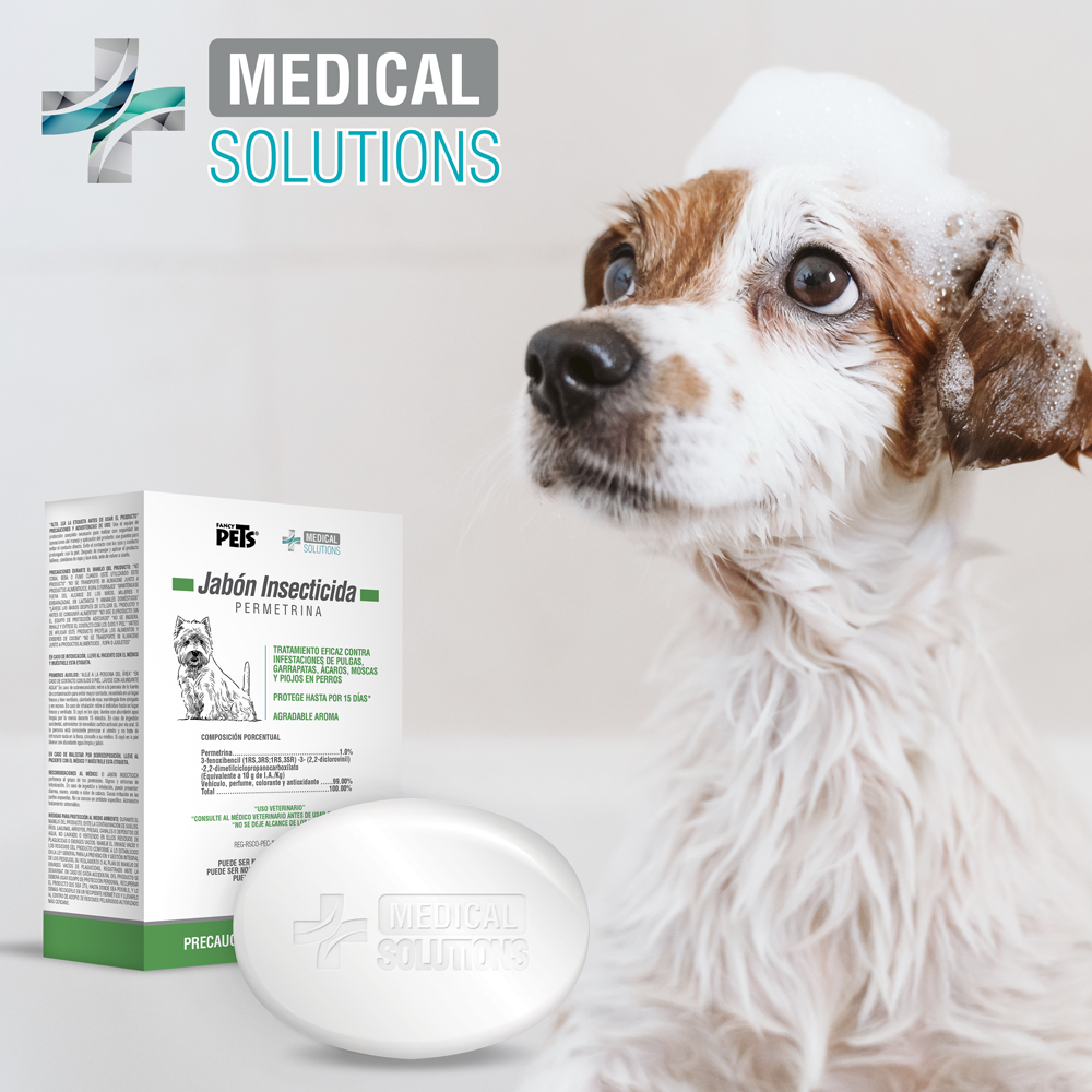 Fancy Pets Medical Solutions Jabón Insecticida para el control y tratamiento de infestaciones por ácaros, garrapatas, moscas, piojos y pulgas en perros. Protege hasta por 15 días. Agradable aroma.