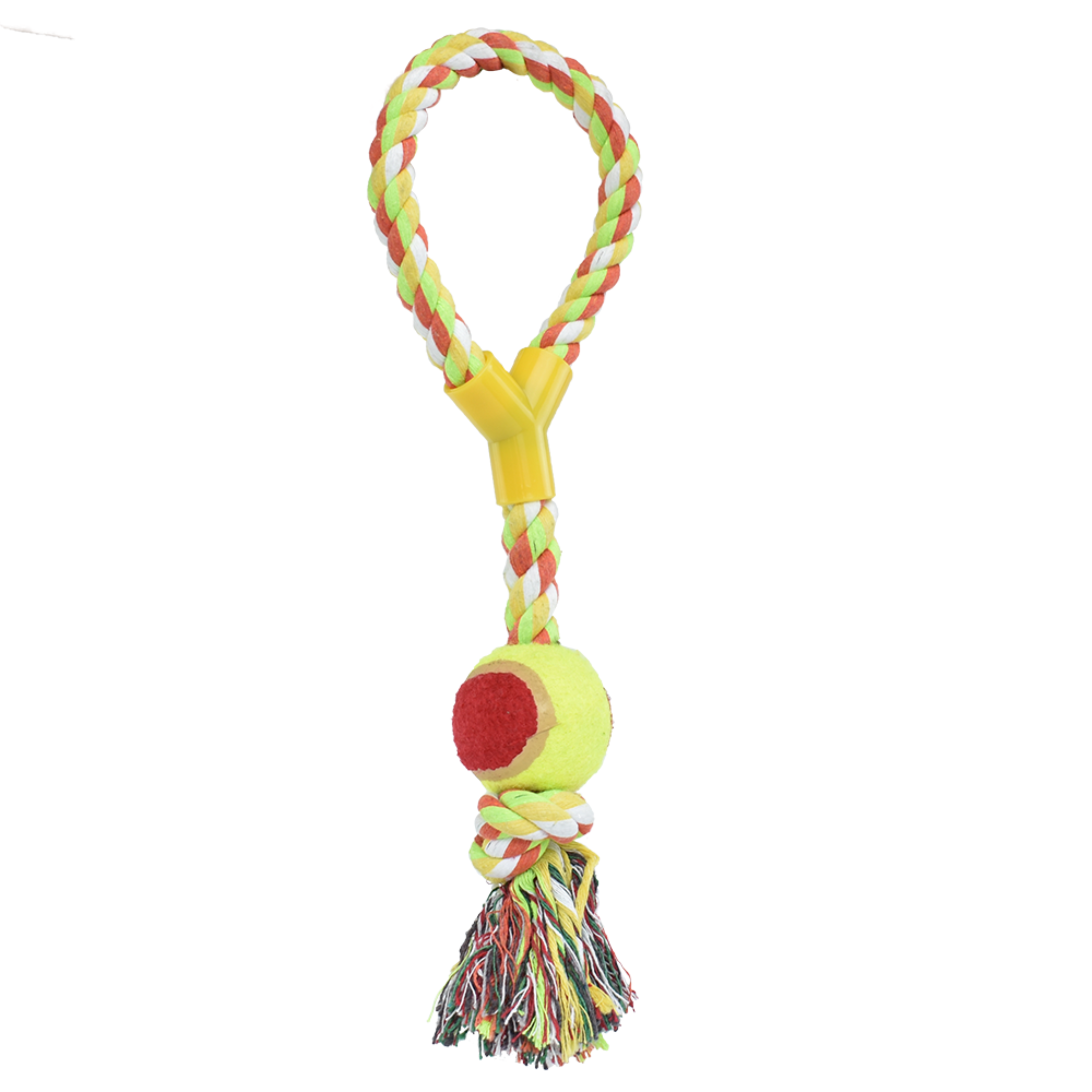 Aro de hilo de algodón multicolor, con pelota tipo tenis y extremo anudado. Fabricado de algodón que ejercita la mandíbula,