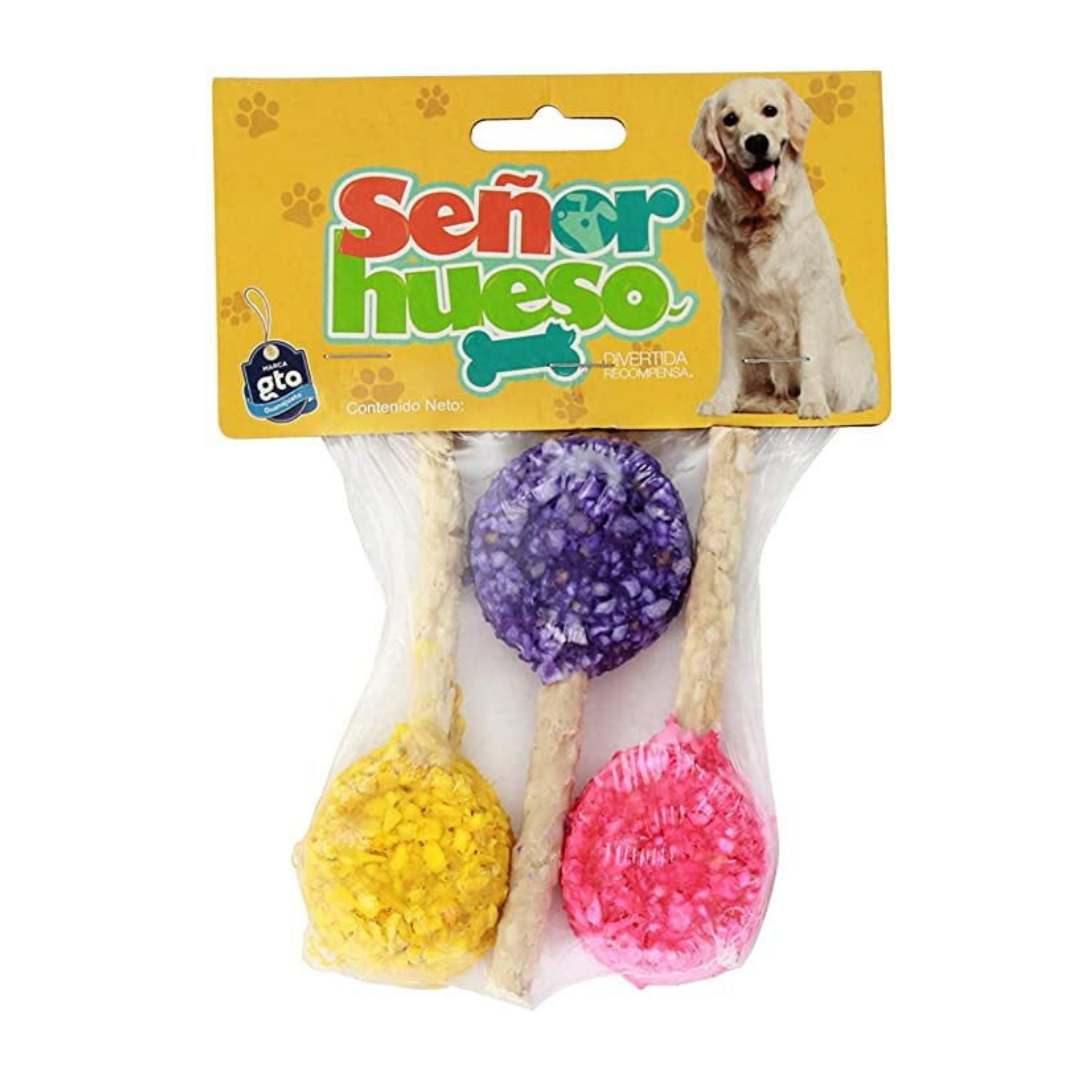 Señor HuesoPaleta Redonda 3pz de carnaza triturada Natural Premio para Mascota.