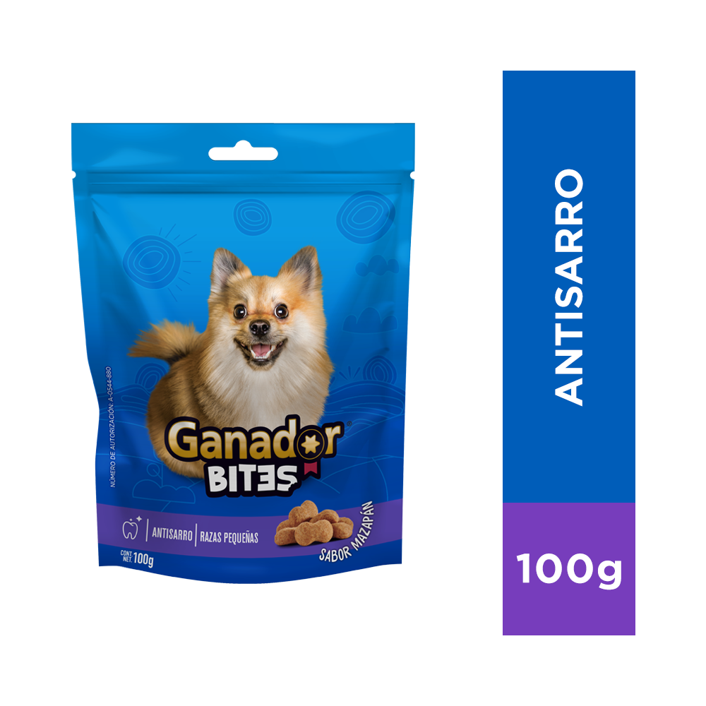 Nota: 1 Pieza de Ganador® Bites Razas pequeñas equivale de 1.5 a 3 g aproximadamente.
