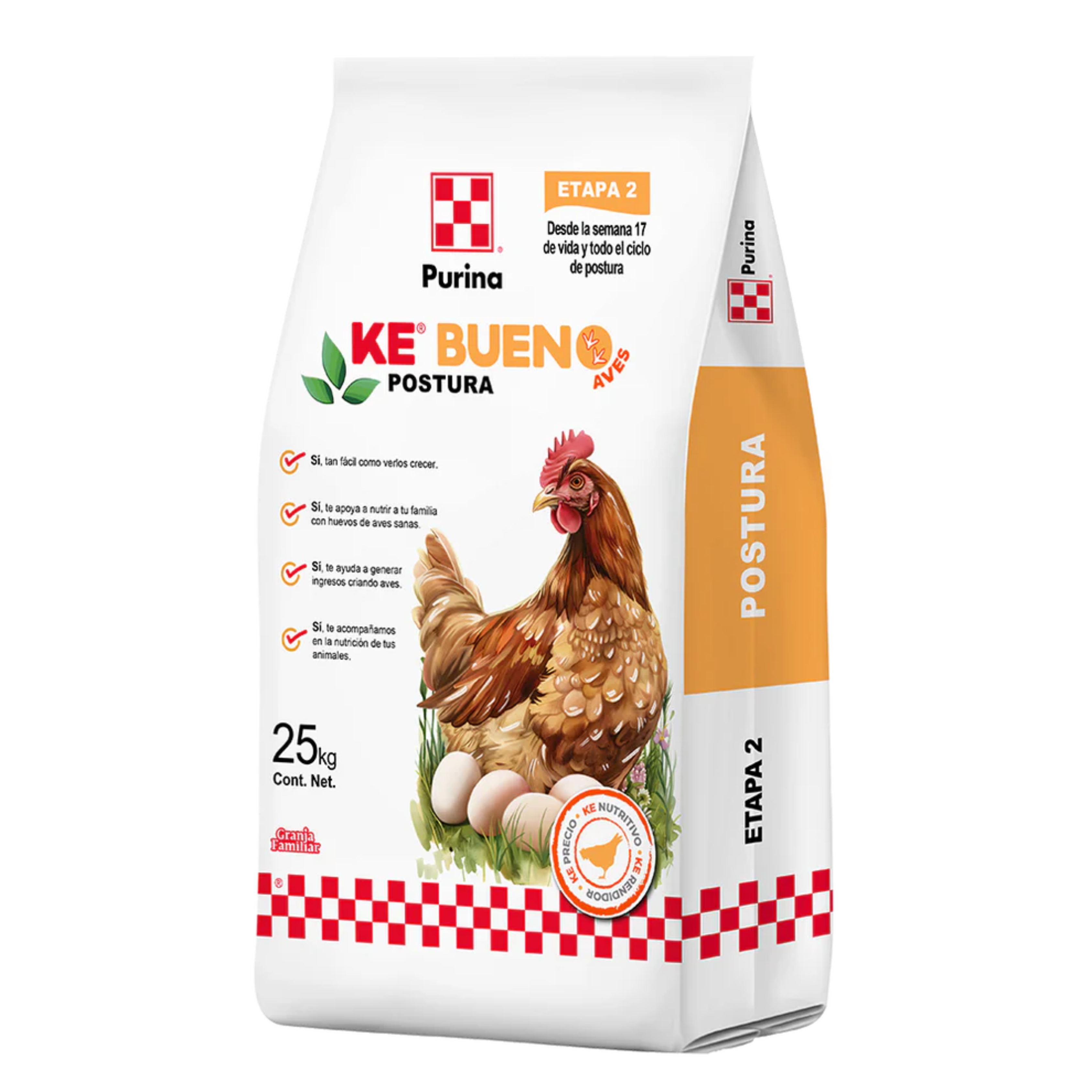 Ke Bueno Postura es un alimento balanceado completo formulado para gallinas de postura desde la semana 17 y durante todo el ciclo productivo. Elaborado en presentación migaja, garantiza una excelente producción de huevo, coloración, calidad de cascarón y fortalecimiento óseo.