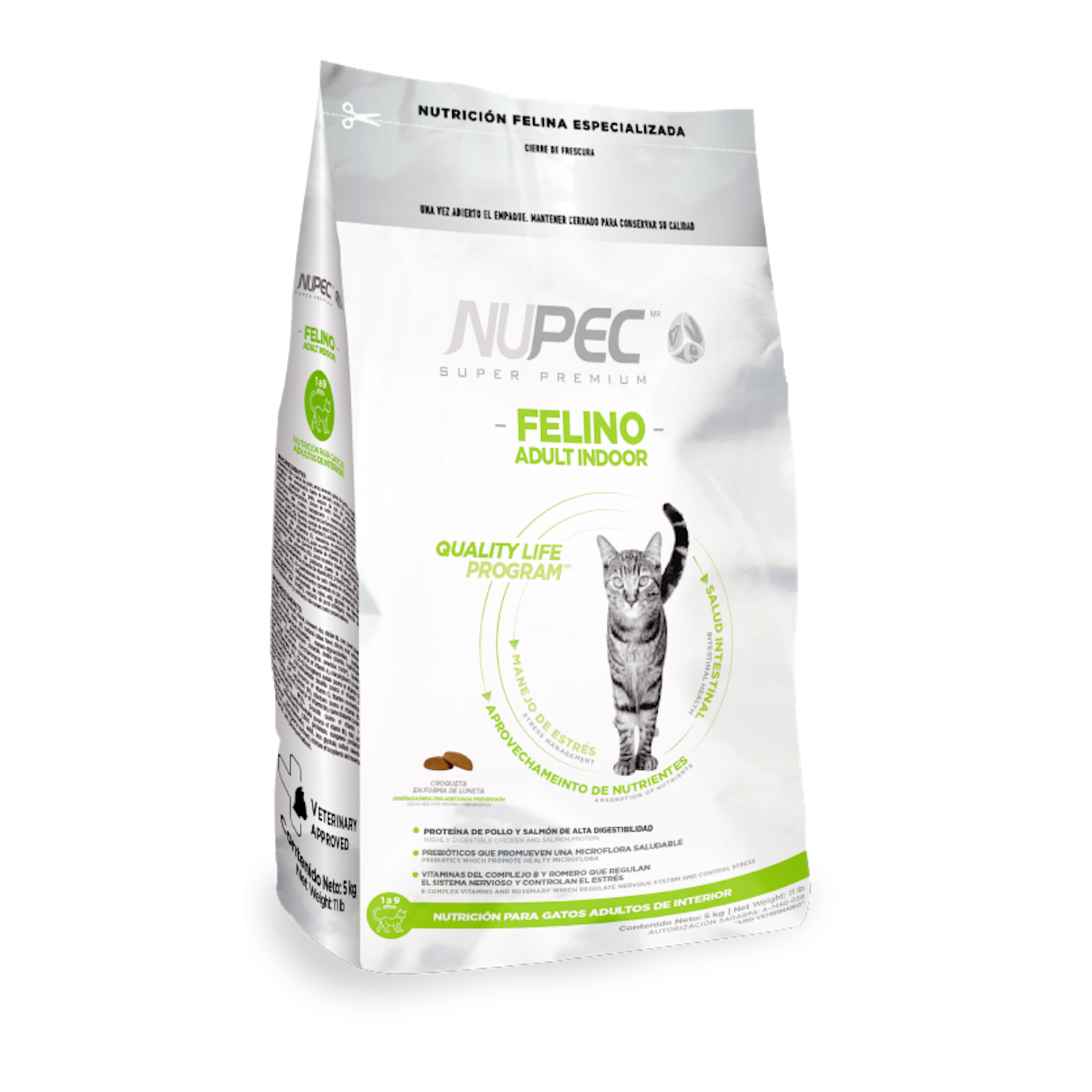 En NUPEC estamos conscientes de que un felino con un estilo de vida hogareño tiene necesidades nutricionales especiales. Por ello, hemos formulado una nutrición especializada con un balance de ingredientes que regulan el sistema nervioso y mantienen una condición corporal saludable.