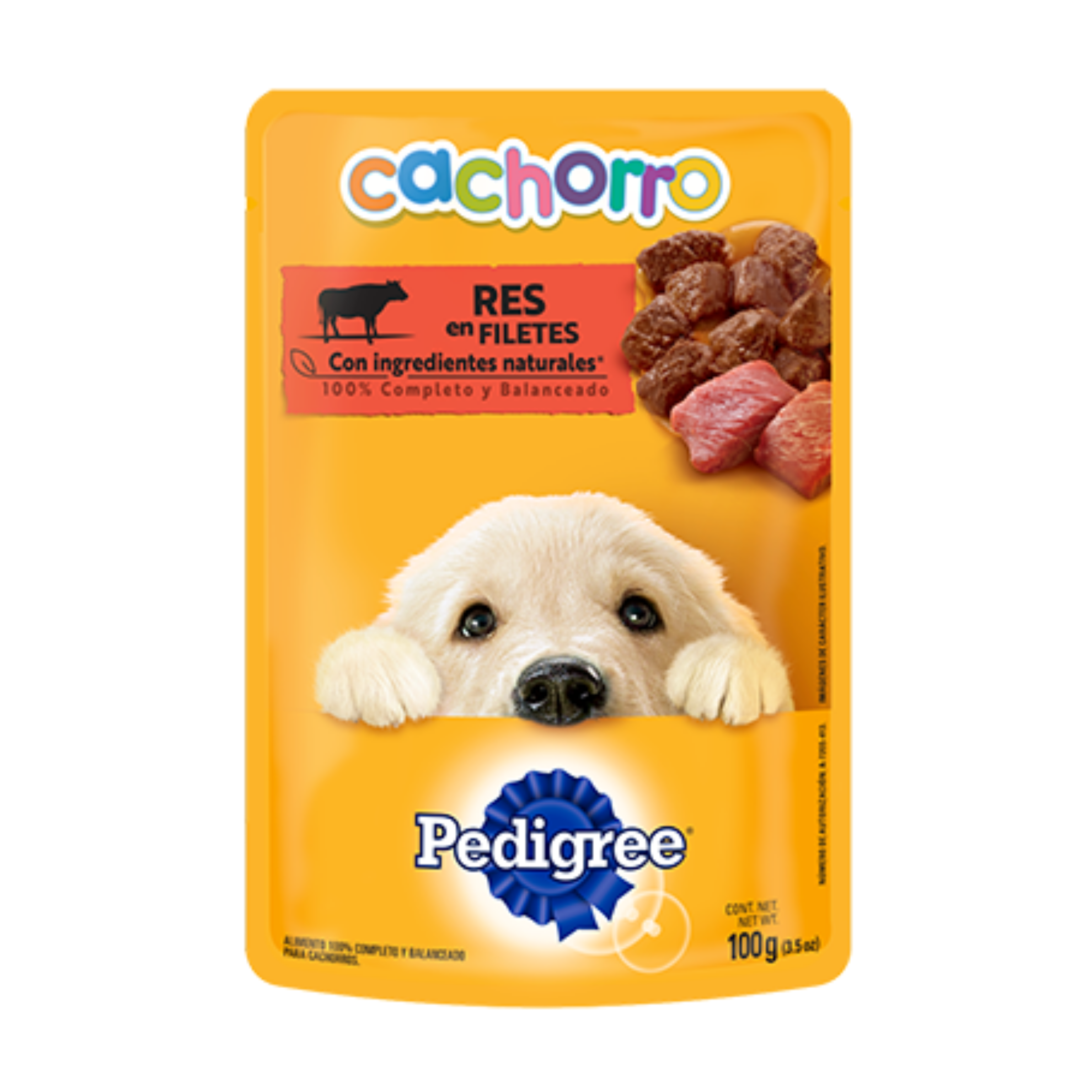 PEDIGREE® SOBRE CACHORRO es un delicioso alimento húmedo para cachorros a base de una suculenta salsa, elaborado con trozos de pollo o carne cocidos al vapor, que aportan a tu mejor amigo todo el sabor y la nutrición necesaria para su crecimiento.