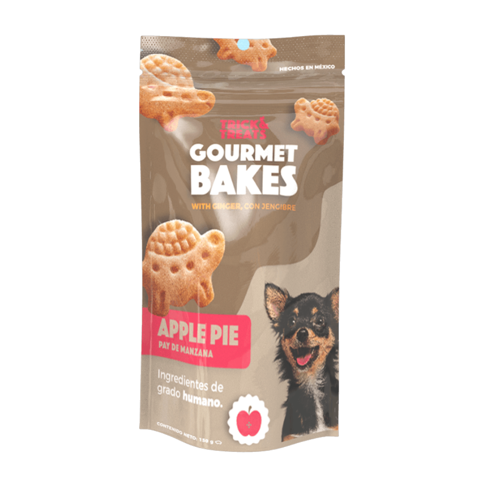 Las galletitas de Gourmet Bakes en sabor pay de manzana y cerdo agridulce son ideales para perros medianos, pero, ¡cualquiera las puede disfrutar sin problema!.